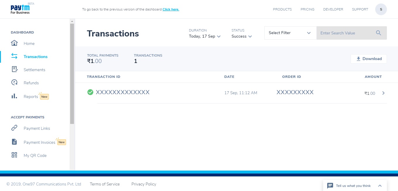 Tap on any transaction to view order ID Business with Paytm app